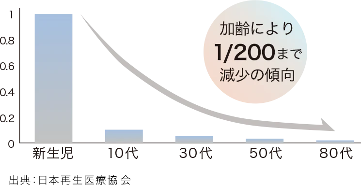 しかし年齢を重ねるとともに細胞を生成する幹細胞の数が減少していきます。